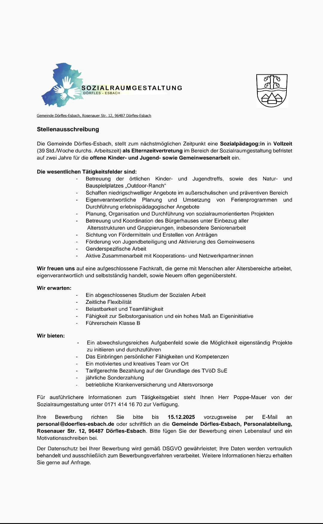 Stellenausschreibung Sozialpädagog:in