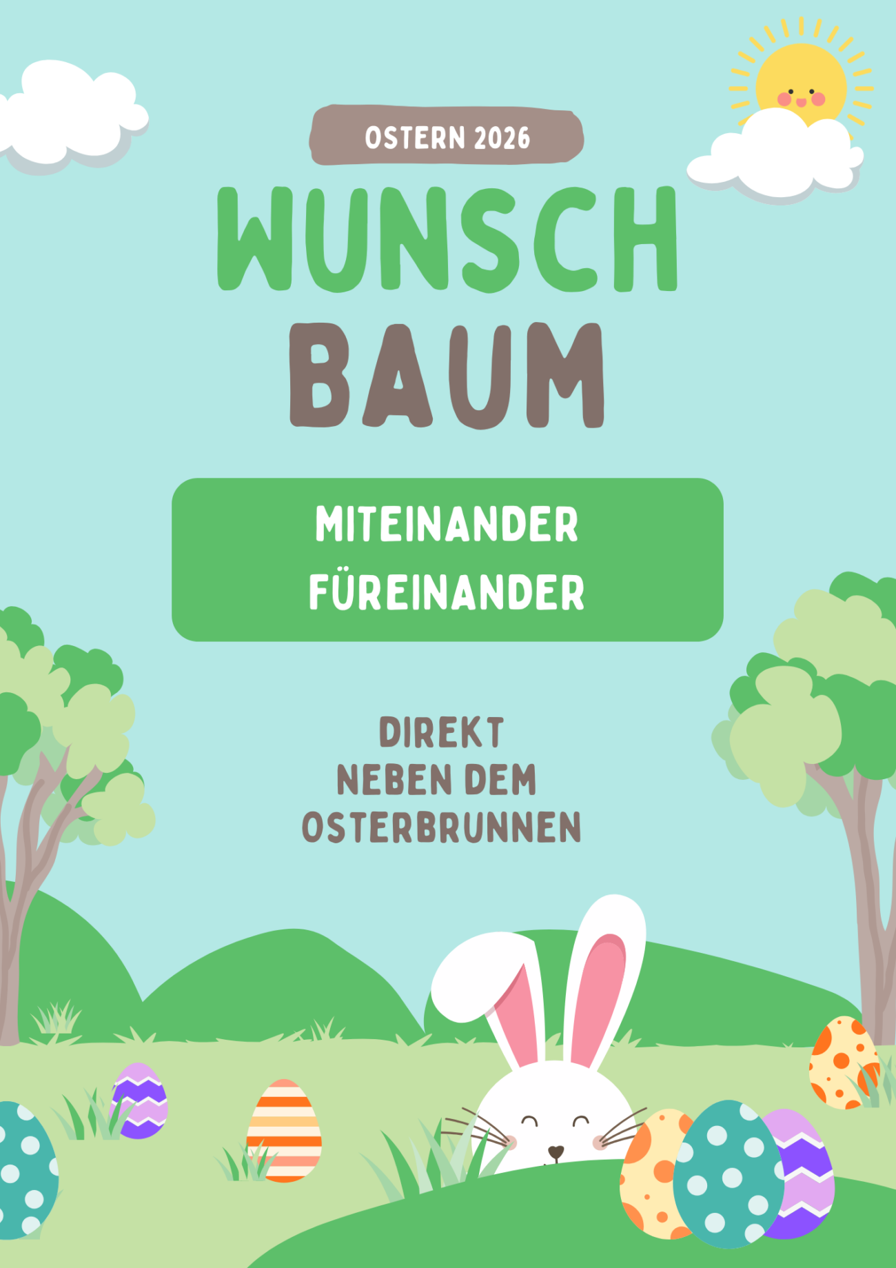 Ostern steht vor der Tür und somit auch das jährliche Osterbrunnen schmücken. Zusammen wollen wir den Brunnen am 26.03.2026 ab 15:30 Uhr ostertauglich machen. Hierfür treffen wir uns zunächst beim Hans-Lotter-Bürgerhaus, um dann anschließend zusammen zum Brunnen zu laufen. Neben dem Osterbrunnen wird es dieses Jahr auch einen Wunschbaum geben. Hier geht es darum miteinander füreinander etwas zu tun. Der Baum befindet sich direkt neben dem Brunnen und soll diesen dieses Jahr ergänzen. Wie der Name schon sagt, soll der Baum mit Wünschen gefüllt werden. Hierfür könnt ihr euren Wunsch auf einen kleinen Zettel geschrieben bis einschließlich 27.03.2026 zu uns ins Hans-Lotter-Bürgerhaus bringen. Gerne könnt ihr uns auch eine E-Mail…